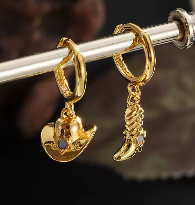 Arete de botas de vaquero y arete de sombrero de vaquera